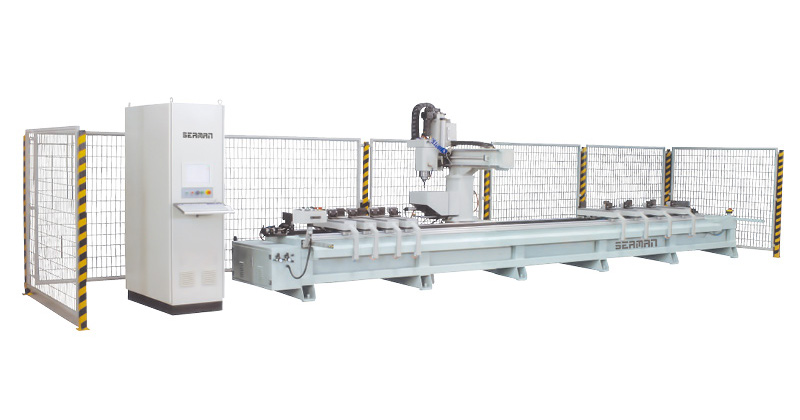 我公司為適應(yīng)軌道交通鋁型材和各種工業(yè)鋁材的加工,專門開發(fā)設(shè)計的一款高檔機(jī)、電、氣一體化設(shè)備。該型加工中心剛性足、速度快,主軸具有轉(zhuǎn)速高和低速較大扭矩的特點(diǎn),具有很高的加工效率,并且根據(jù)軌道交通鋁型材的特點(diǎn)做了適應(yīng)性的特殊設(shè)計,使得該型設(shè)備可以較好的滿足軌道交通鋁型材各種長度工件的高效加工。在軌道交通行業(yè),該類型設(shè)備現(xiàn)在已經(jīng)拓展成為系列產(chǎn)品,該型號設(shè)備是主要產(chǎn)品之一。